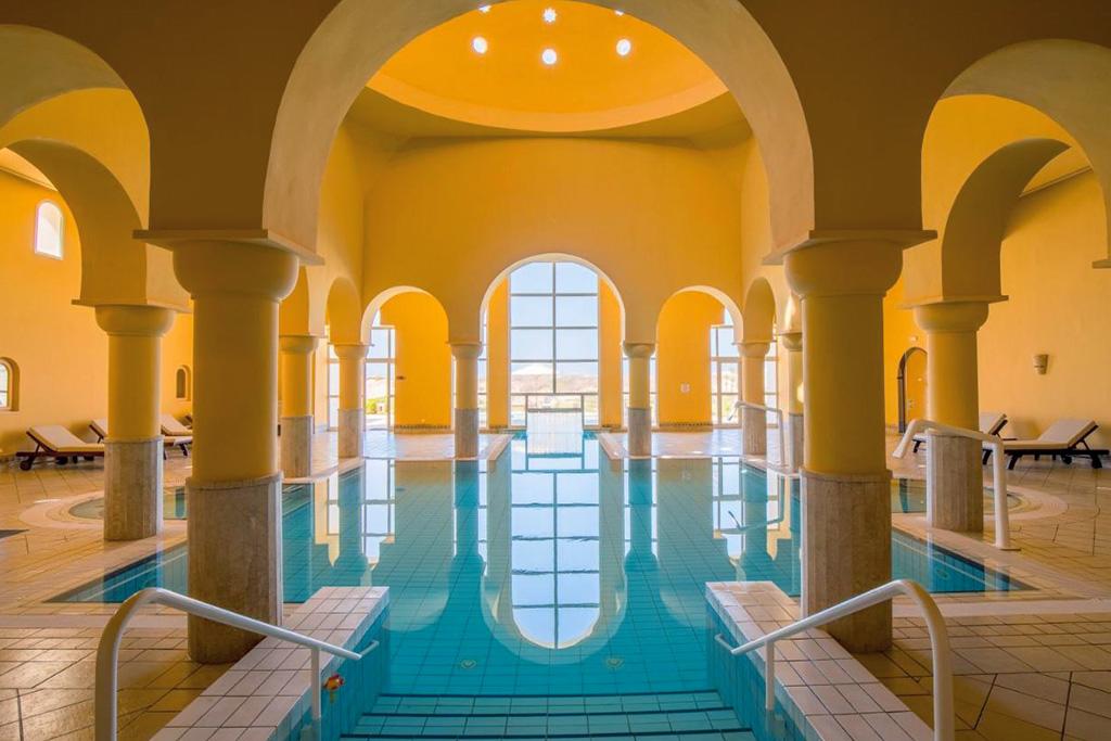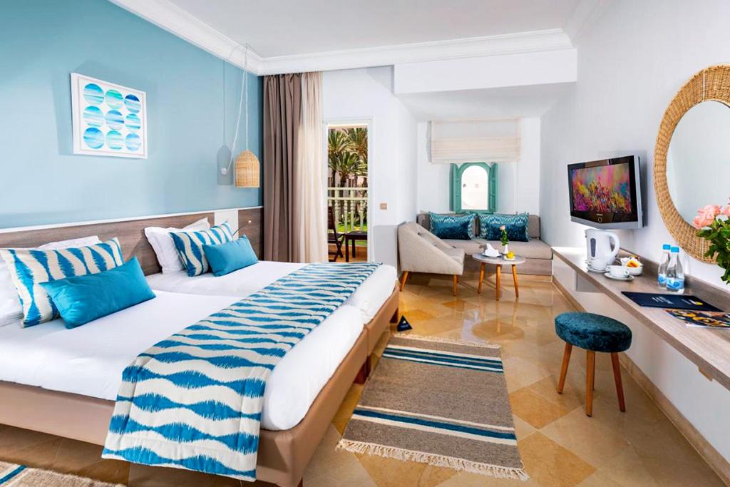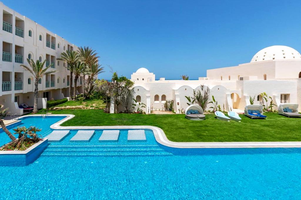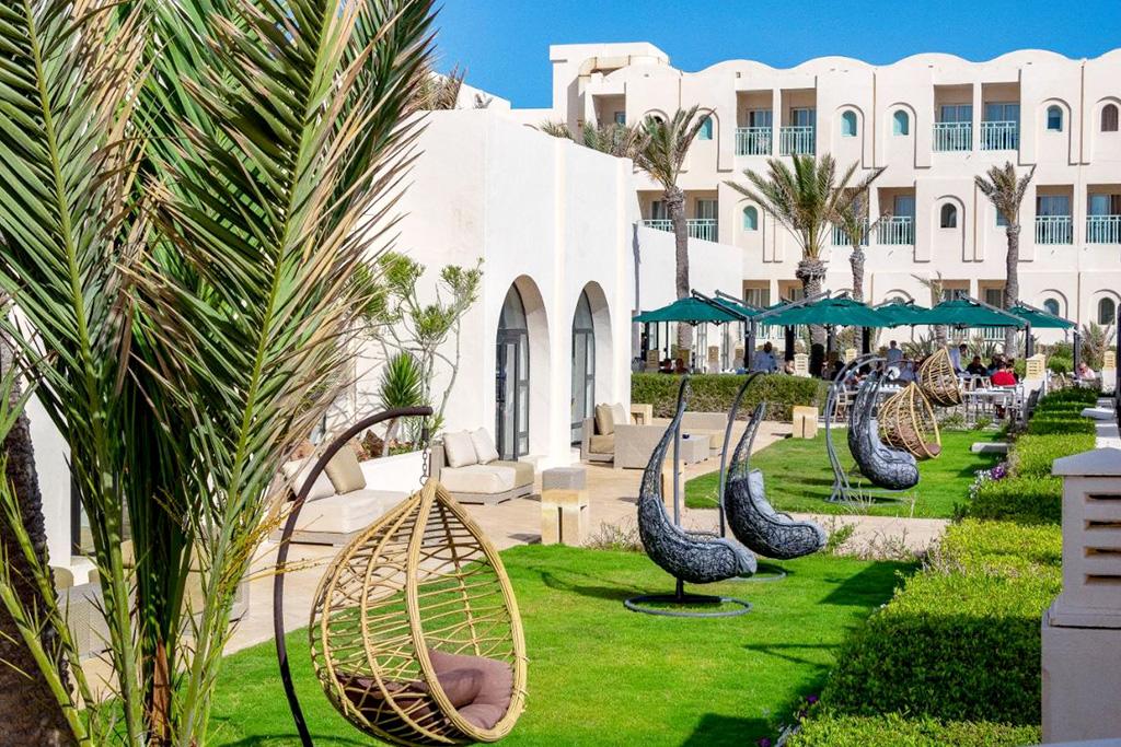 -18 ansBienvenue au Ulysse Thalasso & Spa 5* ! Découvrez une adresse élégante, posée au bord d’une plage de sable fin, sur la côte nord-est de l’île de Djerba. Niché dans un cadre verdoyant et apaisant, cet hôtel haut de gamme allie confort moderne, charme oriental et hospitalité tunisienne. Les chambres, spacieuses et lumineuses, s’ouvrent sur des vues apaisantes sur la mer, les jardins ou la piscine. Profitez d’une formule généreuse, avec un large choix de restaurants et bars, ainsi que d’un superbe espace Spa et bien-être, reconnu pour la qualité de ses soins et ses installations dédiées au bien-être. Avec sa plage de sable en accès direct, ses piscines intérieure et extérieure, ses activités sportives et ses animations variées, cet hôtel est une invitation à conjuguer détente, loisirs et évasion, au cœur de la douceur méditerranéenne de Djerba.